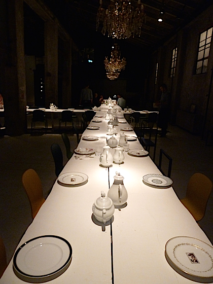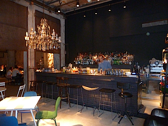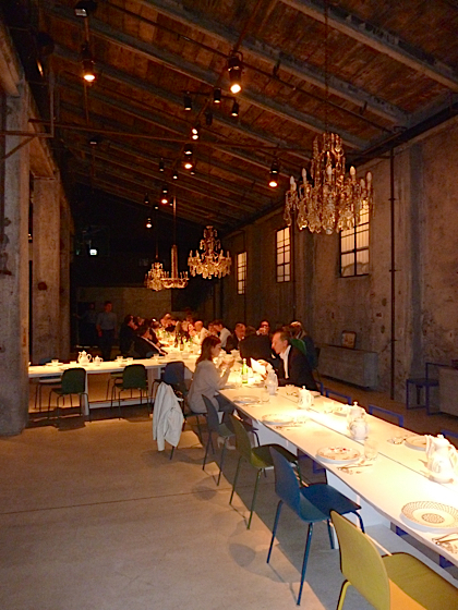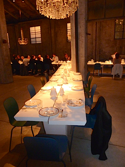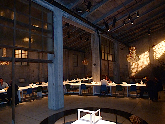 Une mise en scène épurée magnifiant les matériaux bruts d’origine, une table d’hôte XXL de 70 couverts, des chaises Cappellini masculines et féminines (Tate Colour de Jasper Morrison), le tout corsé d’œuvres de Ron Arad et de Ross Lovegrove issues de sa collection personnelle.