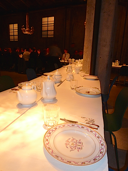 Ici une grande table blanche en bois, occupe l’espace, telle une table d’hôte, vous prenez place autour d’elle les repères de votre espace réservé ce sont les théières numérotées.
