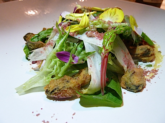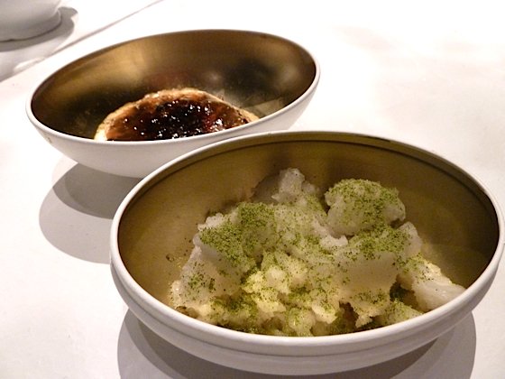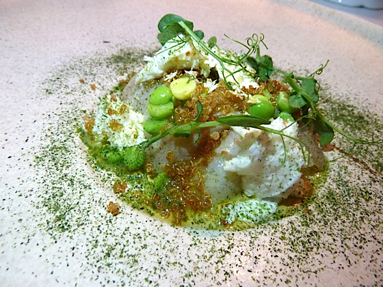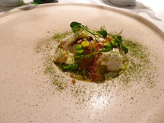 Parmi les nombreux plats que nous avons pu déguster ….Ci-dessus un ceviché de mulet aux petits pois et burrata.