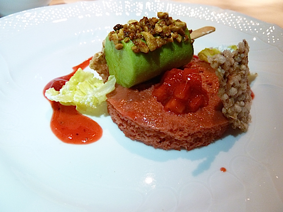 Dessert très innovant avec cette glace à la laitue et ce biscuit chaud à la fraise…