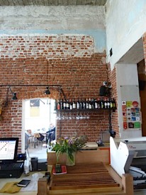L’espace est très agréable, c’est d’ailleurs pour cela que F&S vous communique l’adresse… le seul hic, personne ne s’occupe de vous, c’est un peu bohème dans l’esprit, mais si au moins les gens qui vous accueillent ou vous servent étaient sympa … même même pas ! … on ne répond pas à vos questions, on ne fait aucun effort pour vous servir après 14h15, alors même que le buffet était encore dressé…
