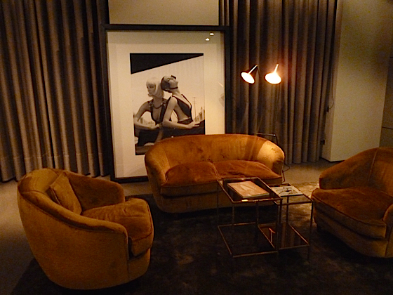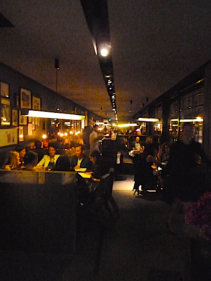 Le lieu est très chic et très branché, on y accède par l’entrée de l’immeuble de la marque, et par un tout petit ascenseur dérobé. Une fois sur place, l’espace est assez bluffant, oeuvres d’arts, meubles de grande finesse, bar lounge très type, une grande terrasse tout le long du restaurant permet de manger dehors.