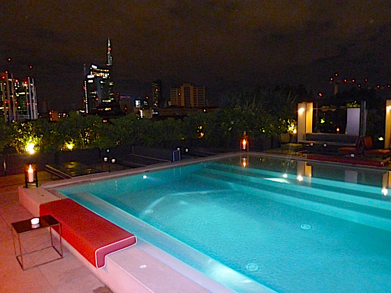 Depuis les deux piscines qui sont disposées de chaque côté du restaurant, on peut admirer la ville de Milan. De larges bed et banquettes vous permettent de vous poser pour siroter les sublimes cocktail ou grignoter quelques tapas. La vue est spectaculaire, la musique vous emporte pour de longues soirées à refaire le monde.