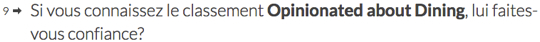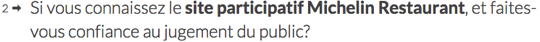 C’est le Conseil de Promotion du Tourisme qui diffuse le questionnaire, apparemment à partir du fichier des participants à l’opération. On ne sait pas vraiment qui est derrière et à quoi vont servir ces informations, peut-être à établir cette fameuse liste des classements des meilleures restaurants de France ou du monde voulue par le fameux Conseil ?… donc à voir …