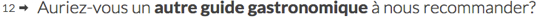 Dans le prolongement de cette initiative, nous avons engagé une réflexion sur le rôle des guides gastronomiques qui fera l’objet d’un colloque cet l’automne. Dans cette perspective, nous vous serions reconnaissants de bien vouloir répondre aux quelques questions suivantes : https://tourismpromotioncouncil.typeform.com/to/INIW7e?id=