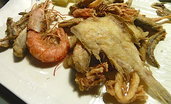 Friture de poissons comme ici sur la côte, carpaccio de thon rouge, » pointus » ces fameux escargots de mer que l’on trouve seulement par ici, artichauts juste grillés, langoustines à la plancha, …. du bon produit travaillé simplement, finalement la bonne cuisine c’est surtout ça.