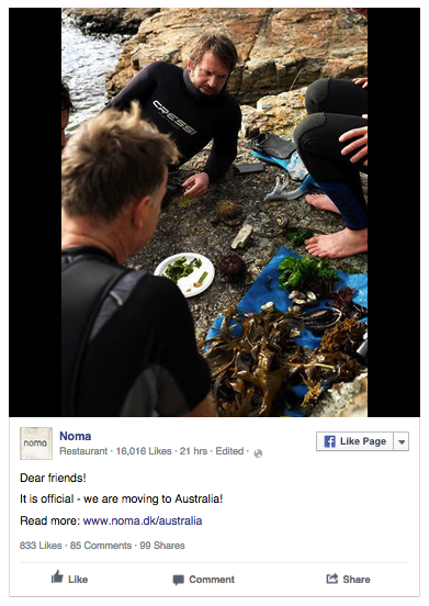 Après Tokyo en 2015, le Noma, a annoncé aujourd’hui qu’il s’installera à Sydney durant dix semaines à compter de ce mois de janvier 2016, pour partager avec le public australien sa créativité.