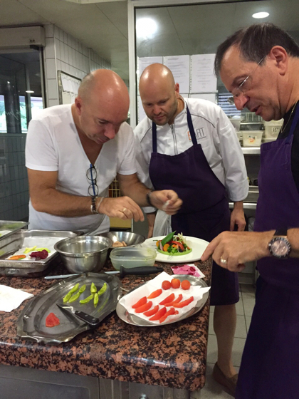 C’est parti pour deux jours en compagnie des frères Pourcel qui ont ouvert leurs cuisines à ce jeune chef en quête de découvrir la cuisine méditerranéenne du Jardin des Sens.