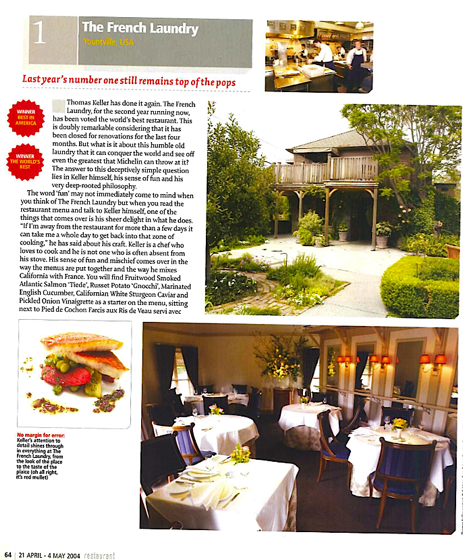 Si en 2004, The French Laundry était classé premier, il est classé 50 éme en 2015, pas loin de la sortie de la liste, par contre il est entré entre temps avec Per Se à New York et se situe à la 40 éme place.