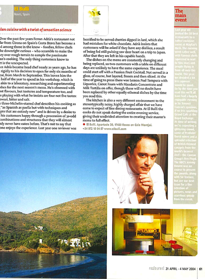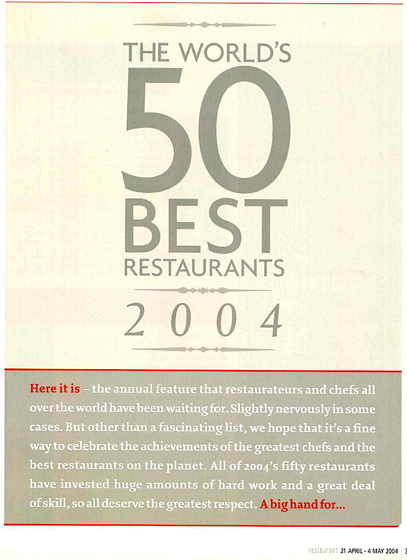 RESTAURANT MAGAZINE — 50 BEST RESTAURANTS IN THE WORLD 2004