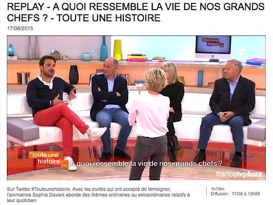 Pour découvrir la vie de ces 4 chefs, leurs parcours, leurs vies en famille, et les découvrir en cuisine, partez pour 1h10 d’émission en compagnie de Sophie Davant qui va essayer d’ouvrir leurs mémoires. Mais hommes et femmes de télévision et de médias, mis à part Christophe Michalak qui parlera de son père qu’il a peu connu, peu se livreront vraiment à l’écran.
