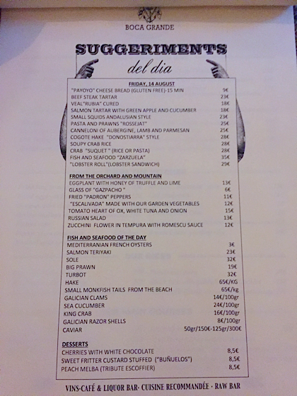 Même si l’on est loin de la gastronomie espagnole version créative, il faut convenir que chacune des préparations qui sont servies sont soignées et bien réalisées. C’est simple et bon, du pan con tomate, au burger au foie gras, à la plancha de fromages, où même les très nombreuses pâtisseries, tout est goûteux.