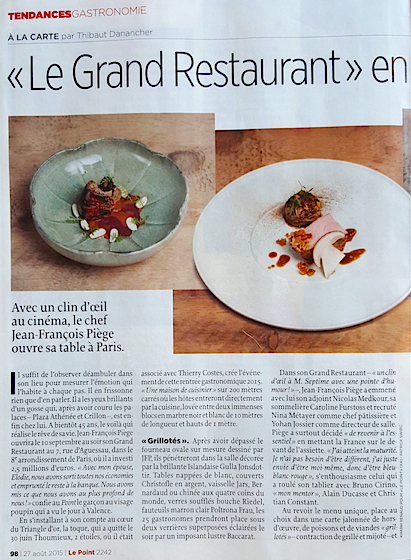 C’est parti pour les premières révélations sur le très attendu » Grand Restaurant » du chef Jean-François Piège à Paris, malgré les rumeurs de retard, le restaurant ouvrira bien le 10 septembre prochain, c’est l’ouverture la plus attendue de la rentrée 2015.