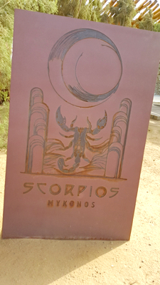 Continuons notre escapade à Mykonos, pour nous rendre au restaurant Scorpios, dans une des belles criques qu’offre l’île.