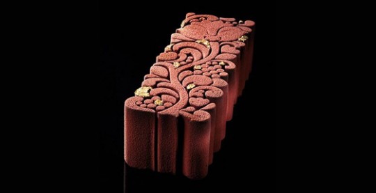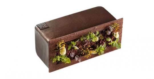 Début septembre les chefs pâtissiers et cuisiniers ont présenté les bûches de Noël que nous trouverons dans les vitrines des grands pâtissiers, chocolatiers, traiteurs et Palaces parisiens. Les chefs se sont creusés la tête et ont dû bûcher sérieusement pour être dans le coup ! … Parmi la vingtaine de bûches de Noël déjà présentées à la presse, F&S a remarqué et sélectionné deux bûches pour leur esthétique ( à défaut de les goûter pour l’instant ). La bûche – Skoulptoura - de Damien Piscioneri au Café Pouchkine à Paris et celle de la chef Anne-Sophie Pic qui joue avec la naturalité avec son - Mur Végétal –