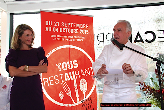 Un millier de tables, du bistrot du coin jusqu’au trois étoiles, participent dans toute la France à l’opération Tous au Restaurant jusqu’au 4 octobre. Le principe de cette opération, lancée en 2010 à l’initiative du chef Alain Ducasse. Le restaurateur compose un menu spécial dont il fixe le prix et propose deux repas pour le prix d’un. L’édition précédente avait attiré près de 500.000 convives, pour un ticket moyen (hors boissons) de 50 euros le midi et le soir. Nouveauté de cette sixième saison, les passagers de trois trains IDTGV pourront déguster gratuitement des mini-plats concoctés par des chefs. Lancement de l’opération hier en compagnie de la Marraine de l’opération Julie Andrieu.