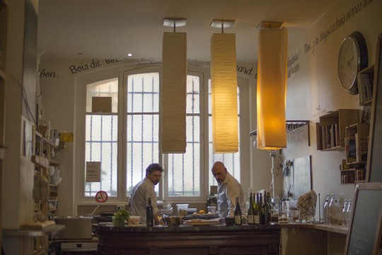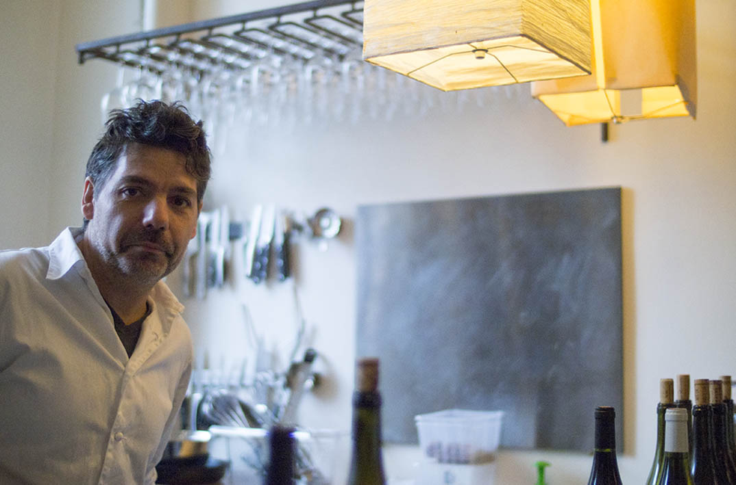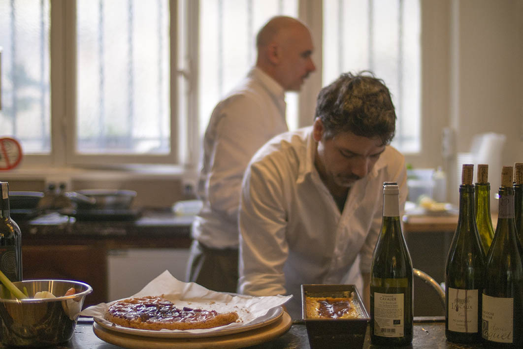 Mais ce chef-là, ceux qui l’aiment le suivent. Jusqu’à Paris, où il est quelque temps chef invité au Verre Volé, puis dans son bistrot Youpi & Voilà !!, rue Vicq-d’Azir, où il développe le concept de cuisine philanthropique. Expérience close en avril 2015, mais pas tout à fait, car Youpi ne meurt jamais, il se délocalise : l’été dernier au Café Joubert à Fayssac (toujours dans le Tarn), et depuis juin, de façon très soft, aux Caves de Prague, dans le XIIe — rue de Prague, artère dont le feng shui gastronomique ne cesse d’augmenter, puisqu’on y trouve déjà l’excellent restaurant Table et l’épicerie méditerranénne Agrology. C’est là qu’il cuisine maintenant, avec son fidèle coéquipier Stéphane Camboulive. Cuisine du marché, produits frais et de qualité, dit l’ardoise. Vous pouvez lui faire confiance. La cuisine de Patrice est fraîche, sensible, colorée, originale et généreuse, empreinte de modestie et d’un style très personnel, intact à travers tous les lieux où le chef se pose.