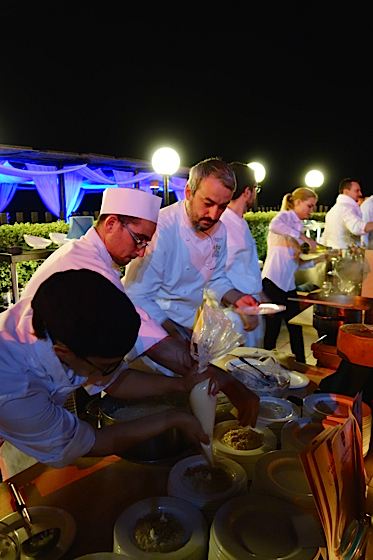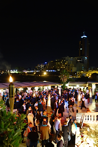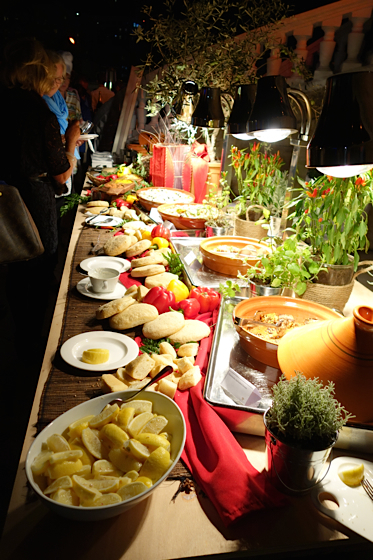 Sur l’ensemble de la terrasse des buffets à thèmes sont ouverts pour les invités, Le Liban, le Maroc, la Grèce, l’Italie présentent leurs meilleurs produits.