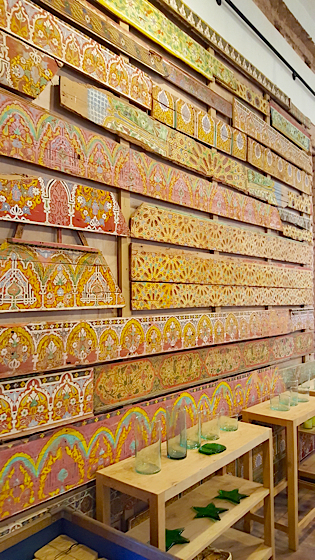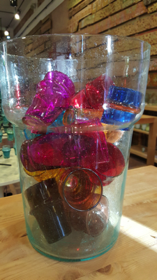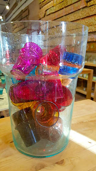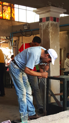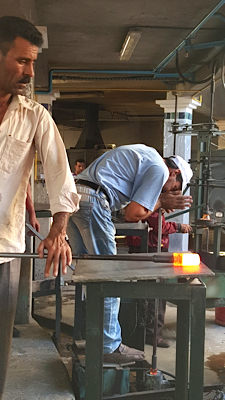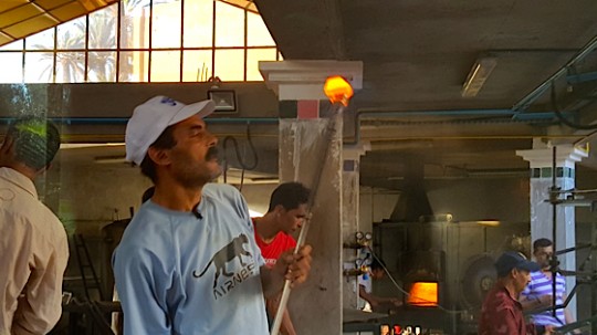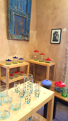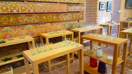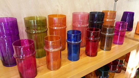 C’est au fin fond des très beaux jardins du Beldi Country Club que vous pourrez aller visiter les diverses boutiques et surtout l’atelier de verre, où depuis quelques mois on souffle à nouveau les verres artisanalement à la bouche, un par un, comme cela a été fait pendant de nombreuses générations à Marrakech.