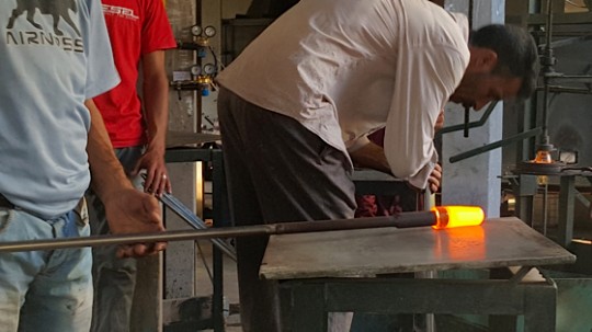 Le procédé de fabrication du verre beldi consiste à recycler deux tonnes par jour de déchets de verre plat et de verre de bouteille, refondus dans un four chauffé à 1600 degrés environ et maintenu à température 24 h sur 24.