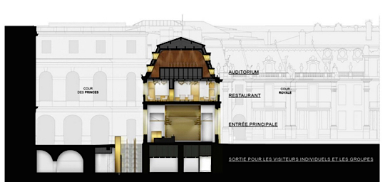 Le projet arichitectural a été confié à l’architecte Dominique Perrault, qui aménagera les 2700 m2 d’espace. Se sera un » café contemporain » qui pourra recevoir les visiteurs venus du monde entier découvrir la résidence royale française.