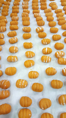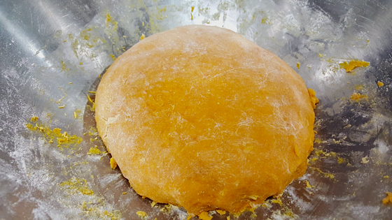 Mélangez la pomme de terre avec la farine en pluie sur une table, ajouter la pulpe de potimarron, les jaunes d’œuf, le sel et le sucre. Mélanger le tout pour réaliser une pâte. Rouler les gnocchis sur la table. Pochez au fur et à mesure dans une casserole d’eau salée chauffée à petit bouillon. Quand ils remontent à la surface, laissez les une minute, puis rafraîchissez-les dans de l’eau glacée, puis égouttez-les.