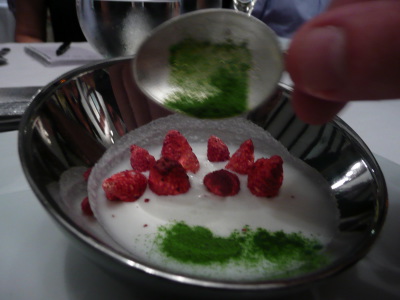 des fraises des bois hyophilisées, du thé Matcha, un lait de coco