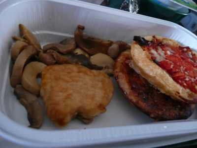 Les vols coûtent très cher sur cette destination, et le service est loin de valoir ces tarifs là….. et pour final je vous laisse apprécier la bouffe qui nous a été servi….. je me suis posé la question » mais qui à marché dessus avant de nous l’a servir ???? « …….