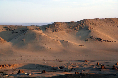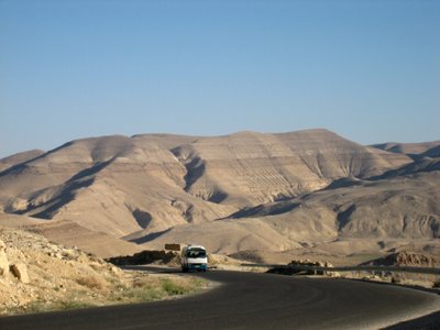 5 heures de bus dans le désert, a arpenter des routes interminables entourées de sable et de dunes. La chaleur qui s’échappe du sol donne l’impression que le paysage se trouble. Les kilomètres défilent sans voir la moindre âme qui vive, nous croisons sans cesses des camions qui transportent marchandises et carburants, ils roulent à des allures impressionnantes, le bus fait à chaque fois des écarts.