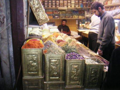 On ne cesse de s’enfoncer dans les ruelles, toujours à la recherche de la perle rare, la marqueterie est très présente, c’est une spécialité de la Syrie, de même les épices, les savons traditionnels.