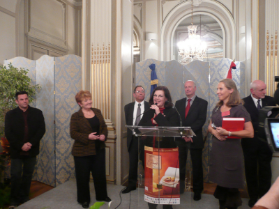Cérémonie officielle avec le Préfet de Région au micros, Le Maire de Périgueux et les divers représentants du Conseil Général, de l'Agglomération.....
