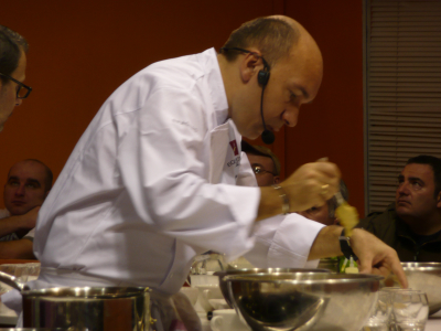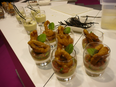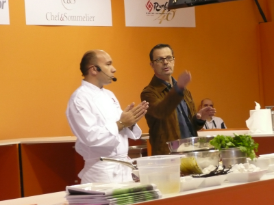 Journée Marathon pour moi qui à démarré le matin avec mon intervention au Snacking des chefs le matin avec la présentation de trois recettes pour créer un menu vendu autour de 15 euros, démonstration commentée par mon copain Éric Roux. C’est au total 20 chefs qui se seront succédés pendant la semaine sur ce lieu de démonstration, 20 jeunes chefs enthousiaste qui auront donné le meilleurs d’eux même pour dire que la crise n’est pas une fatalité, que notre profession ne dois par baisser les bras, mais innover et proposer de nouveaux produits !