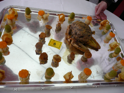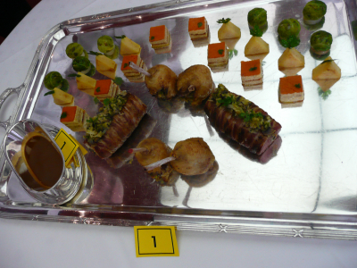 5 heures pour réaliser ça dans les cuisines de l’école Ferrandi à Paris. Démarrage des dégustations à 12h10 pour goûter les plats des 7 candidats….. bon, le niveau, disons plutôt moyen, je vous laisse juger….