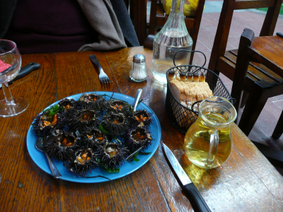 Dès midi les assiettes d’oursins et de pitchilines sont réservées, Nathalie court à l’étal en chercher d’autres pour nous avant qu’il ne ferme….