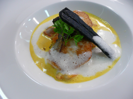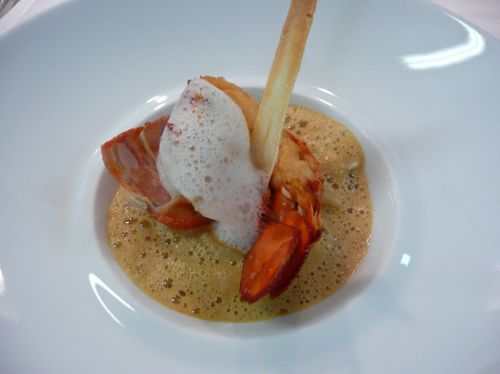 Demi queue de homard aux Salsifis, jus de carcasses émulsionné.