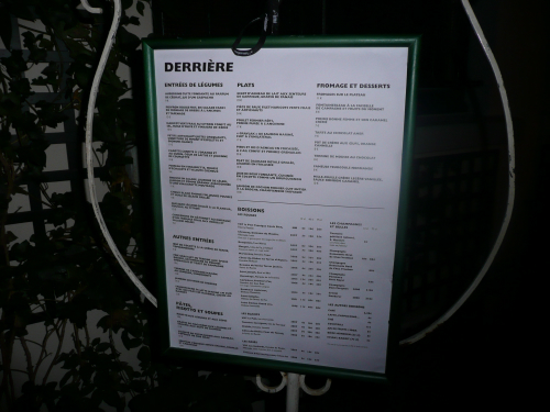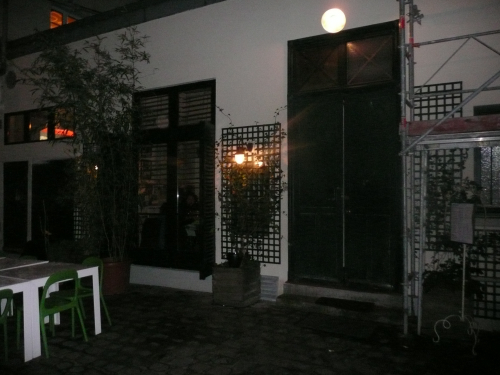 » Derrière « , c’est leur toute nouvelle ouverture, un restaurant dans une maison de famille situé juste derrière le Andy Whaloo, pas d’enseignes, pas d’indications, il faut passer une porte cochère et pénétrer dans une cours aux pavés anciens entourés d’immeubles d’habitation , et au fond vous devinez le discret porte menu, et bien c’est là.