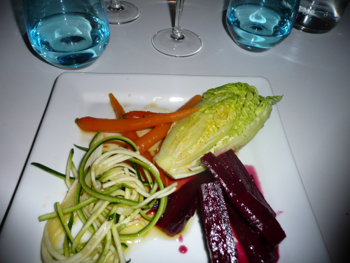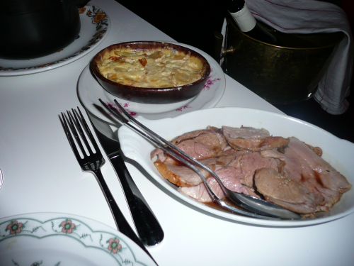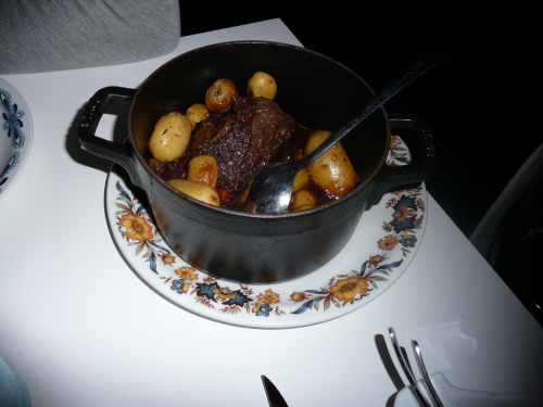 Bon n’oublions quand même pas que nous sommes là pour manger…. la carte est simple comme à la maison ( un peu plus raffiné quand même …), les soupes sont bonnes, la salade de jeunes carottes et betteraves au caramel d’orange aussi, l’oeuf cocotte, la joue de boeuf confite aux pommes de terre ou le gigot d’agneau servi avec un gratin de panais idem…..