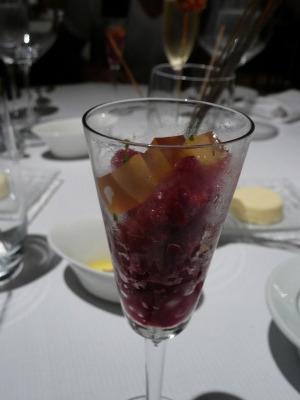 Granité de sangria, gelée à la citronnelle et romarin