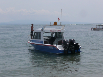 Nous partons ce jour pour l’île de Lembogan, c’est pas bine compliqué, il faut se rendre sur la plage de Sanung où nous avons loué un bateau avec deux accompagnants.
