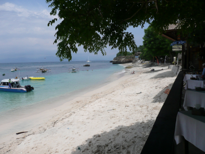 En approche de l’île de LembaranArrivés sur la plage de Sanung, vous pouvez louer masques, tubas, palmes et tout l’attirail pour se lancer dans l’observation des fonds marins, c’est un bon présage, car jusqu’à maintenant de l’autre côté de l’île sur les plages de Jimbaran, Legian, et Khuta l’eau y est plutôt marron – pas très attrayant -…. si ce n’est pour les surfeur qui profitent des vagues…