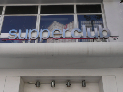 Nous arrivons au Supperclub, vers 10 heures, beau ciel bleu, la grande avenue est vide, le dimanche matin comme partout, c’est la grasse matinée……le lendemain de grosses soirées, c’est pas toujours beau à voir une boîte de nuit…. mais ici le personnel d’entretien s’affaire depuis très tôt pour que tout soit en ordre, changement des tissus des canapés et coussins, préparation de la salle pour le cocktail du soir