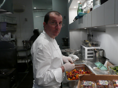 Quand à moi je suis également entrain de m’organiser pour être prêt pour ma fine gelée d’ail aux supions, sorbet tomate ananas, salade d’herbes…. et mon dessert, un chocolat chaud épicé à boire surmonté d’une émulsion au café et de flocons de riz croustillants.