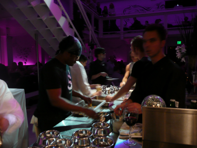 Challenge réussi, puisque les 220 personnes présentent sont reparties sourire au lèvres et souvenirs plein la tête.C’est dans une ambiance bon enfant que nous avons réussi à réaliser un menu digne d’une grande table. Une » extraordinay supperclub experience « ……