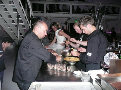 Toutes les équipes de Supperclub s’étaient donc mobilisés pour donner à cette soirée, tout l’éclat qu’elle méritait…. il faut dire que de retrouver 4 chefs de renommé internationale dans un bar lounge club, c’est rare et dans un lieu aussi underground que celui ci c’est unique…
