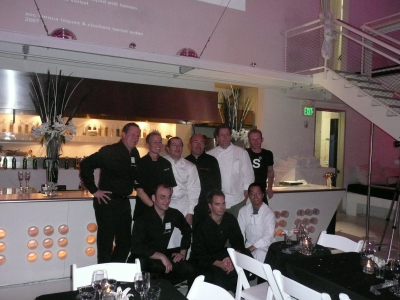 L’équipe des chefs et les deux sommeliers avant la soirée….