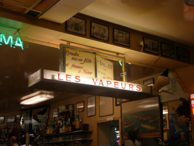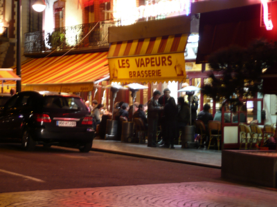 Deux établissements qui servent très tard et qui sont deux établissements très réputés dans la région. 23h30 nous passons à table aux » Vapeurs « , qui est encore bondé de monde….. Huîtres et crevettes du coin, une bonne viande grillée avec des frites maison, un oeuf à la neige et nous voilà rassuré pour la soirée…. le personnel est sympa, la nourriture est bonne, que pouvions nous attendre de mieux ?