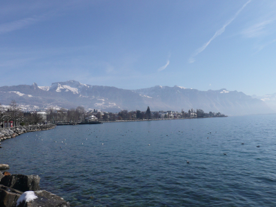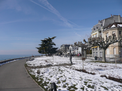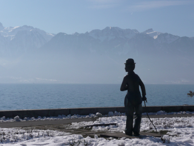 Sur le chemin nous nous arrêtons dans le canton de Vau, à Vevey, un petite bourgade qui longe le Lac Léman, la ville est très calme, la neige et le froid donne l’impression d’une ville encore endormie.