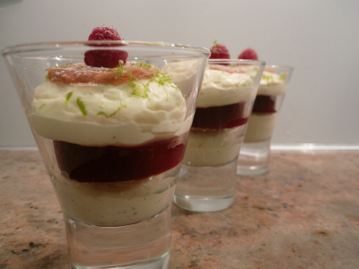 Millefeuille croustillant aux framboises en verre, crème légère à la vanille et citron vert