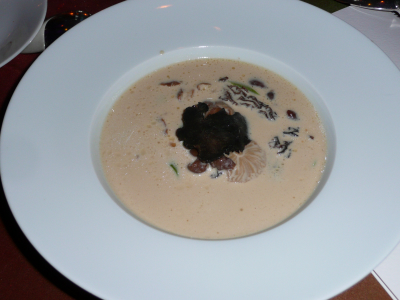 » Oreiller moelleux de mousserons et de morilles aux asperges de pays » selon Michel Guérard, accompagné d’un Crémant de Limoux 2005 » Toques & Clochers «