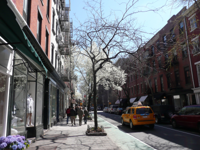 Dans les rue de Soho, les arbres sont déjà en fleurs…. c’était très cool….